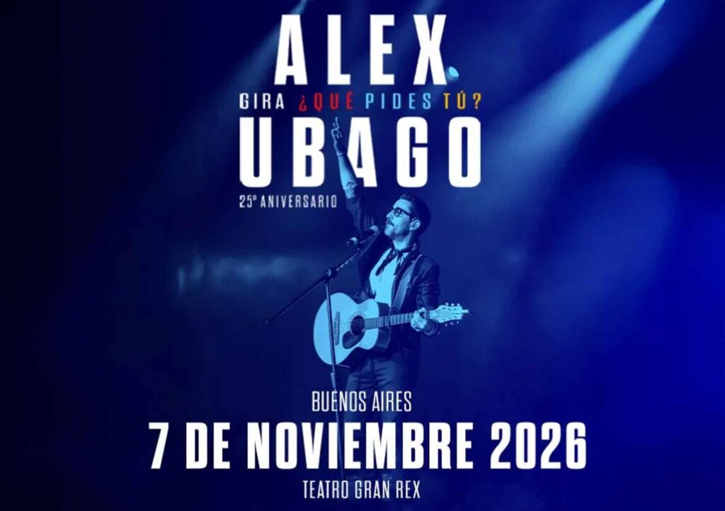 Alex Ubago se embarca en una gira mundial junto a su banda para celebrar el aniversario de su álbum ¿Qué pides tú? . Y como era de esperar, Argentina será el gran testigo de este precioso viaje nostálgico por canciones que, sin duda, forman parte de la banda sonora de nuestras vidas, con fechas confirmadas en Buenos Aires (7 de noviembre, Teatro Gran Rex), Tucuman (10 de noviembre, Teatro Mercedes Sosa), Mendoza (11 de noviembre, Teatro Mendoza), Córdoba (13 de noviembre, Quality Espacio) y Rosario (14 de noviembre, Bioceres Arena).