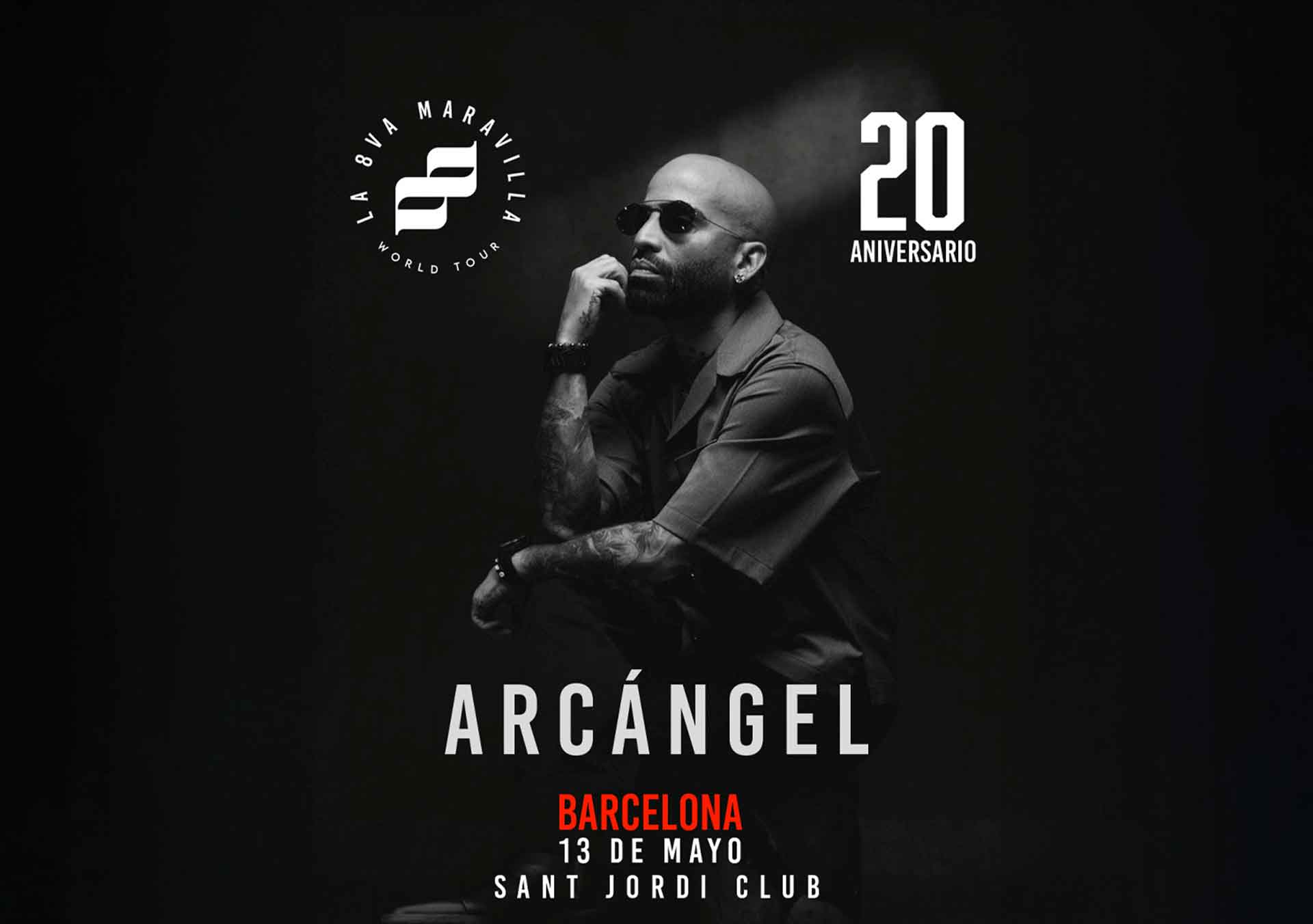 Arcángel confirmó su regreso a Barcelona para el próximo 13 de mayo en el Sant Jordi Club. La fecha se integra dentro de su ambiciosa gira internacional “La 8va Maravilla World Tour 20 Aniversario”, con la que el artista puertorriqueño celebra dos décadas de vigencia y liderazgo en la escena urbana global.