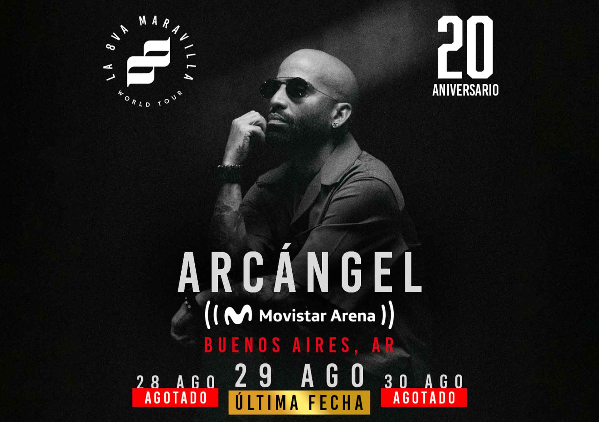 Arcángel suma una tercera y última fecha en el Movistar Arena, programada para el 29 de agosto. La presentación forma parte de la gira internacional “La 8va Maravilla”, un tour que acompaña el lanzamiento de su más reciente álbum de estudio y marca el vigésimo aniversario de su carrera en la música urbana.