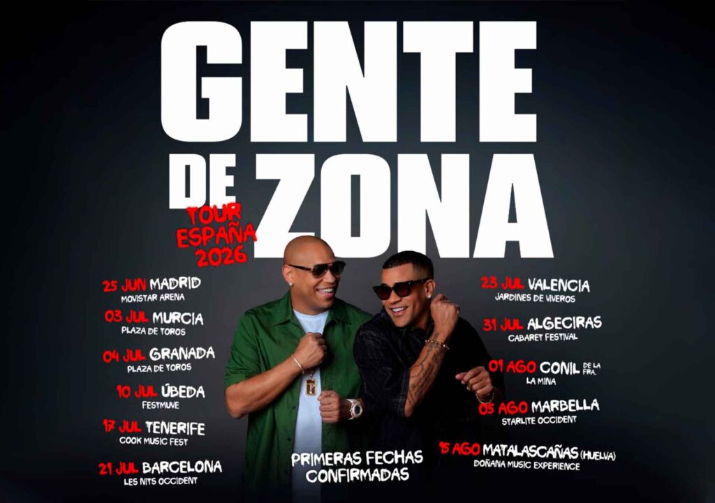 Gente de Zona anunció su primera gira por España, prevista para 2026. El Tour España 2026 marcará el debut del dúo en un recorrido oficial por el país, con una serie de conciertos que incluirán varias ciudades y que, según adelantó el propio grupo, sumará nuevas fechas en las próximas semanas.