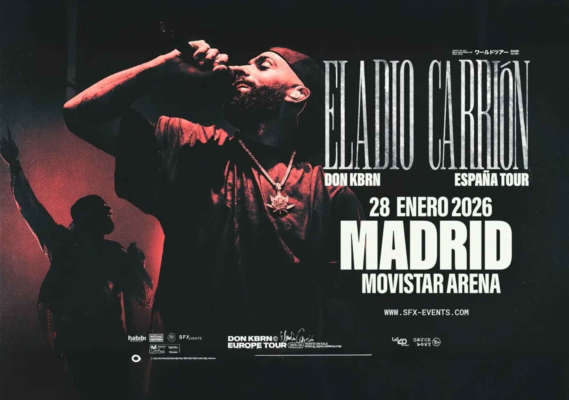Eladio Carrión regresará a Madrid el próximo 28 de enero de 2026 con un concierto en el Movistar Arena. La fecha forma parte del Don KBRN España Tour, la gira con la que el músico presenta su más reciente etapa discográfica y que ya recorrió varias ciudades a nivel internacional.