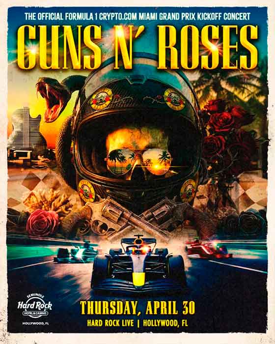 Guns N’ Roses será parte del Gran Premio de Fórmula 1 de Miami 2026 con un show en vivo que funcionará como apertura oficial del evento. La presentación está programada para el 30 de abril en el Hard Rock Live de Hollywood, días antes de la competencia, que se desarrollará entre el 1 y el 3 de mayo.