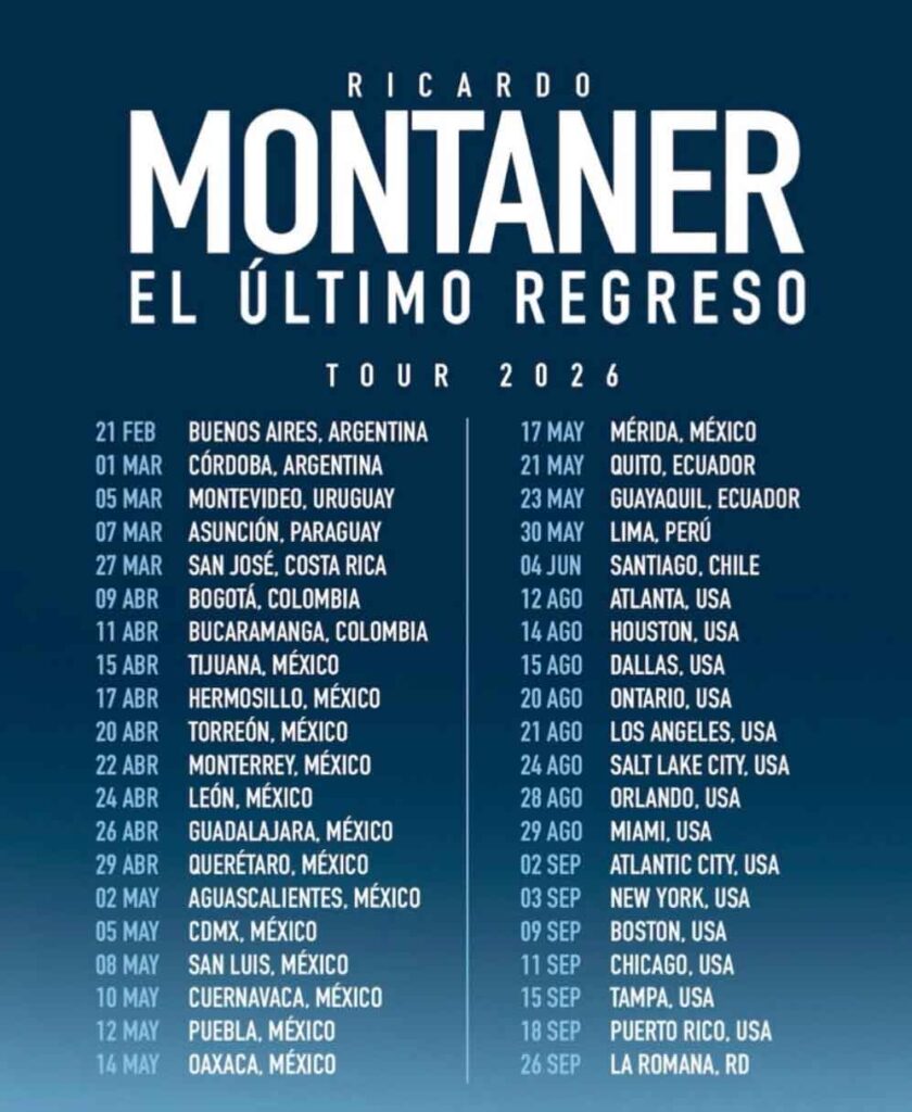 “El Último Regreso” incluirá paradas en Argentina, Paraguay, Costa Rica, Colombia, México, Ecuador, Perú, Chile, Estados Unidos y República Dominicana, antes de continuar por Europa con presentaciones en España, Francia e Italia. DSe trata de una gira que celebra más de cuarenta años de trayectoria, con un repertorio que recorrerá sus mayores éxitos y momentos emblemáticos de su carrera.